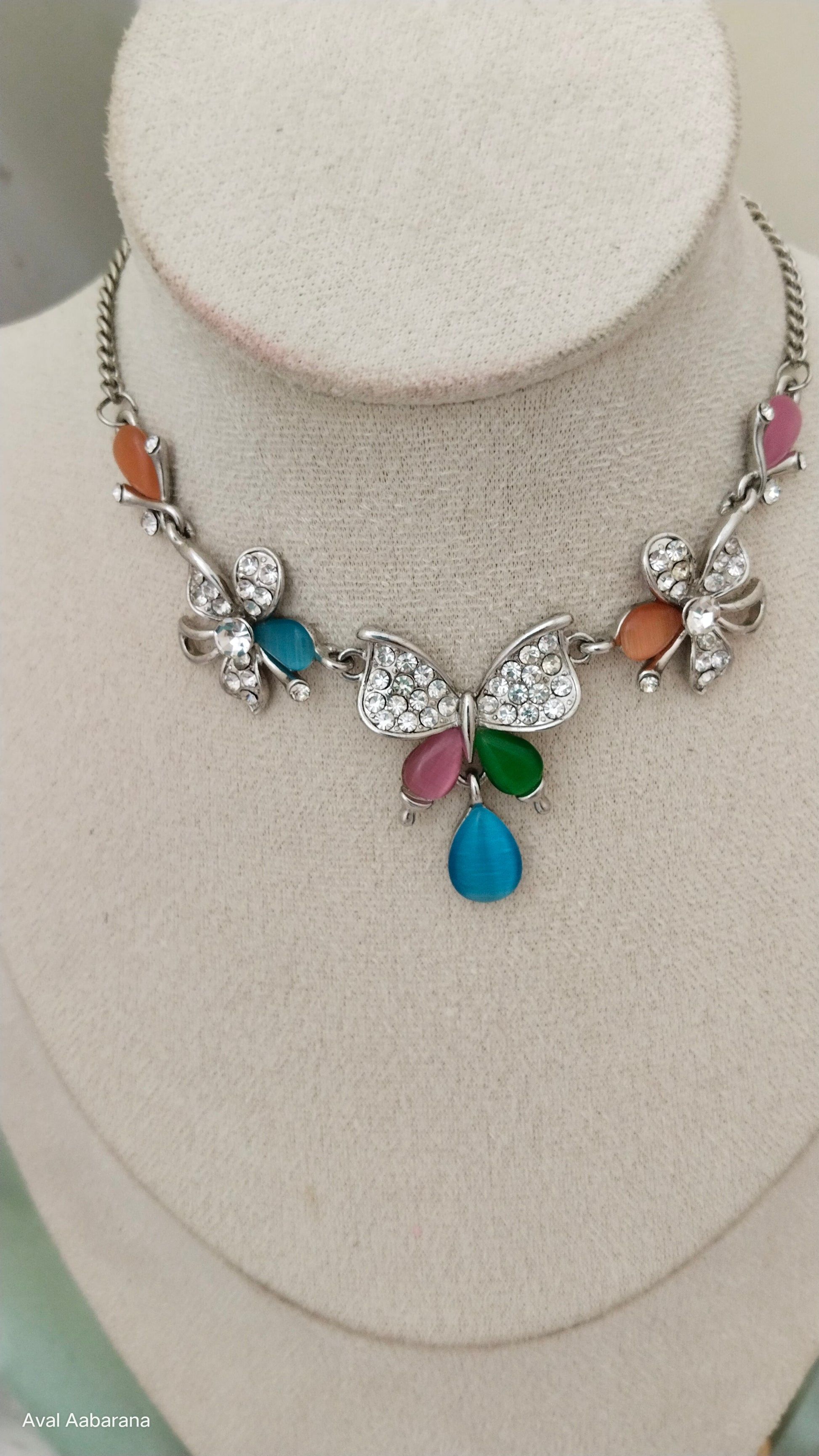 This Platinum tone Diamond replica necklace is adorned with multi color stones, giving it a unique and luxurious appearance. The platinum tone adds a touch of elegance to any outfit, while the high-quality diamond replica stones offer a budget-friendly option without sacrificing style. Elevate your look with this glamorous and versatile accessory.