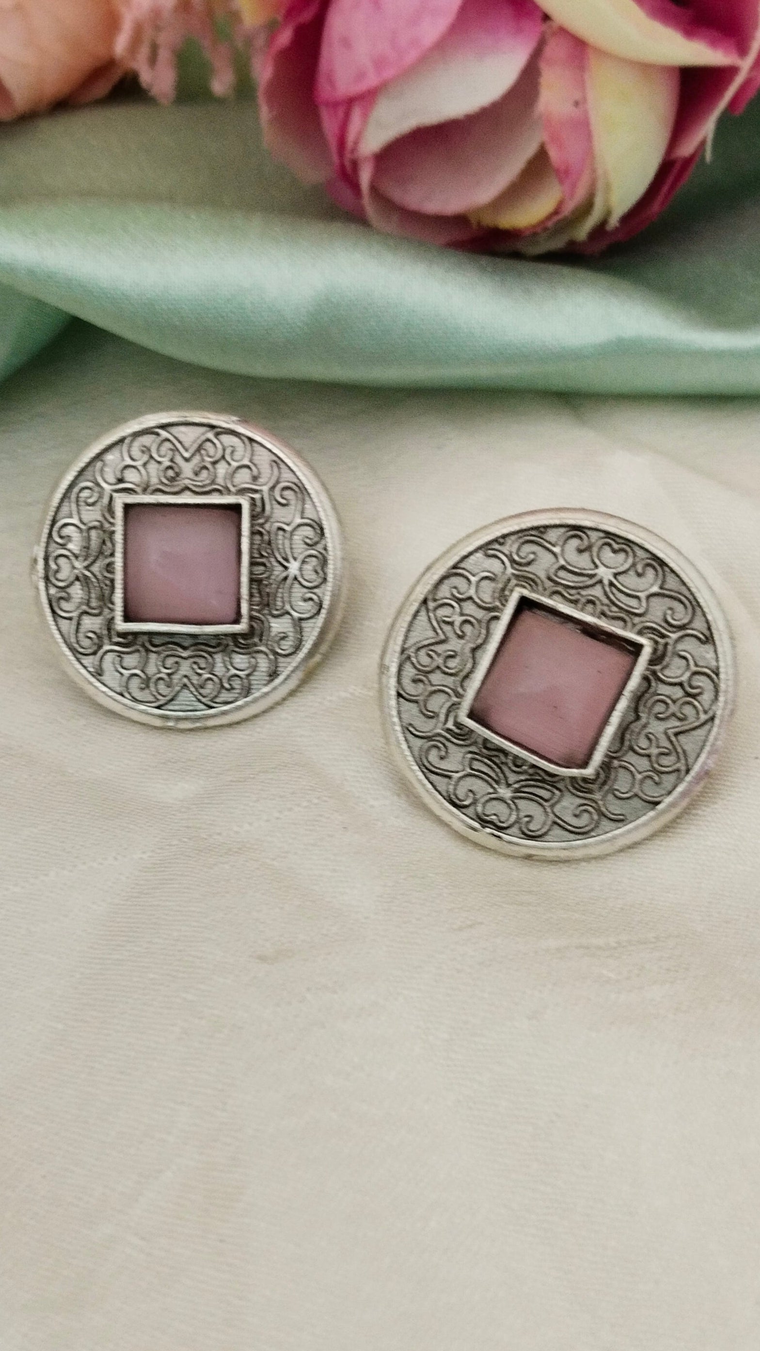 Silver Replica self designed turquoise, Red & pink monalisa stone circle earring